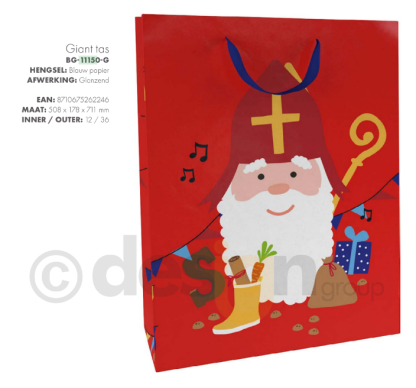 De XL cadeautas Sinterklaas in de perfecte ‘zak van Sinterklaas’ om alle kadootjes op pakjesavond in te doen. Met het vrolijke design is deze XL tas een echte eyecatcher en sluit hij uitstekend aan bij de overige Sinterklaas versiering. De cadeau tas is maar liefst 71 x 51 cm groot en de besteleenheid is 12