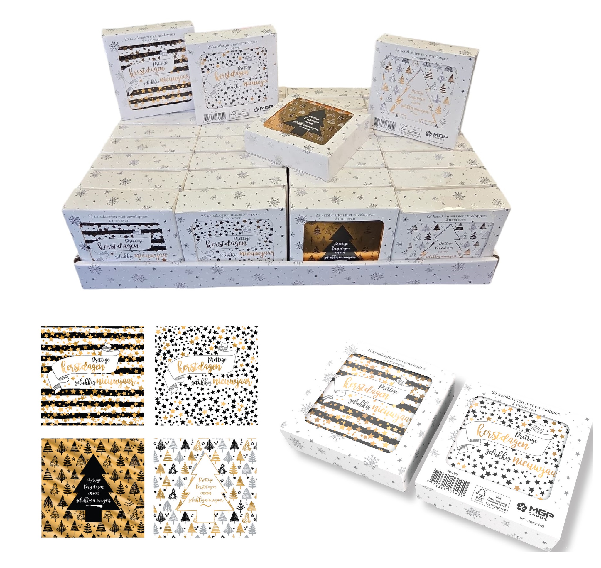 50-1207. Kerstkaarten/envelop doos á 25st. 4ass.