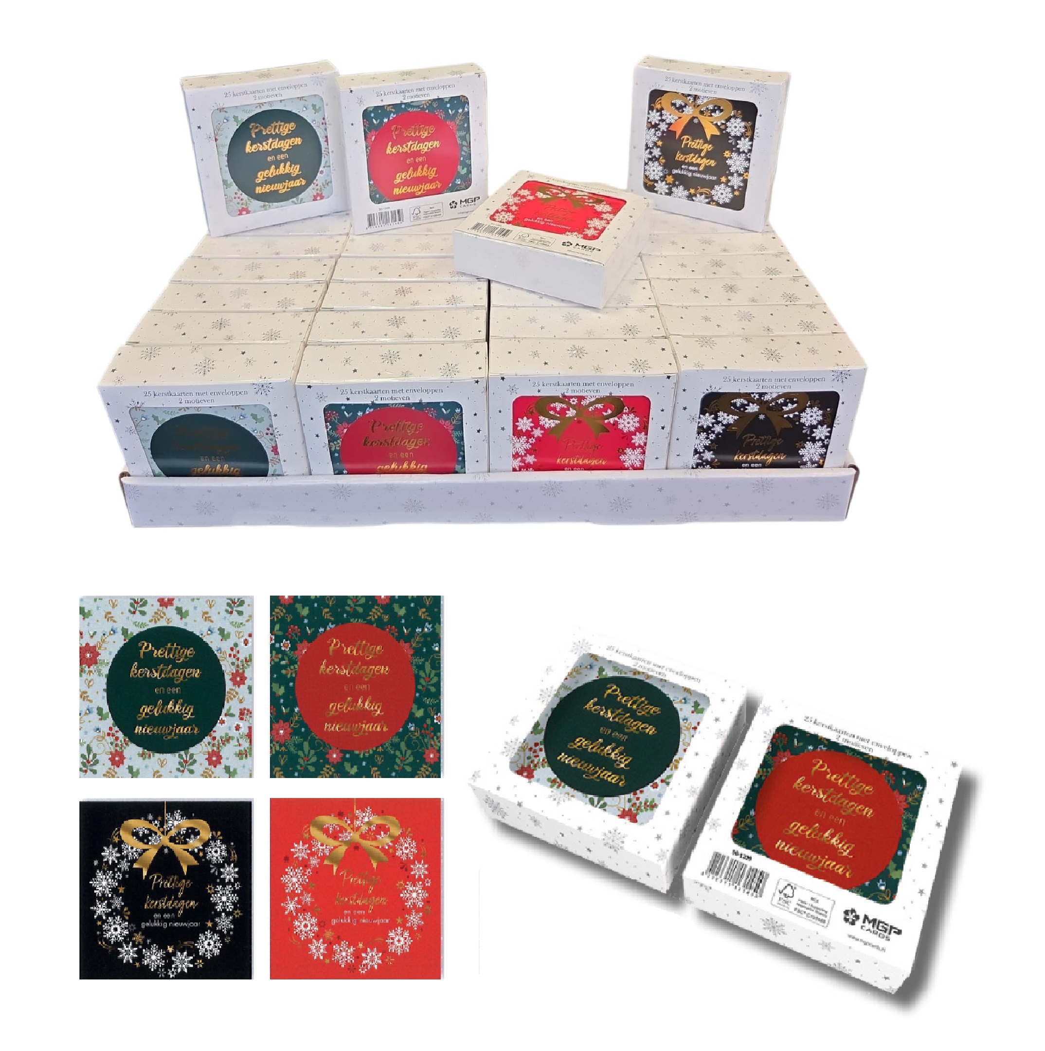 50-1209. Kerstkaarten/envelop doos á 25st. 4ass.
