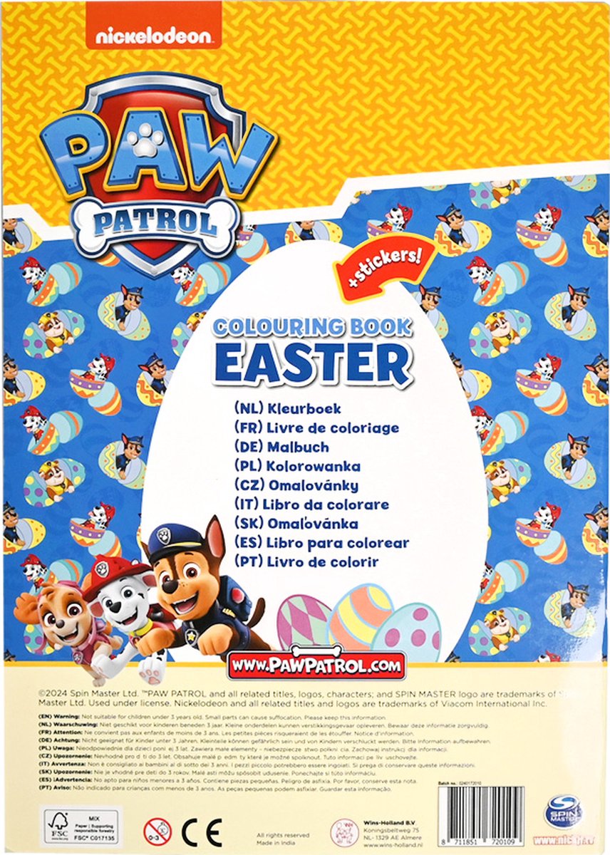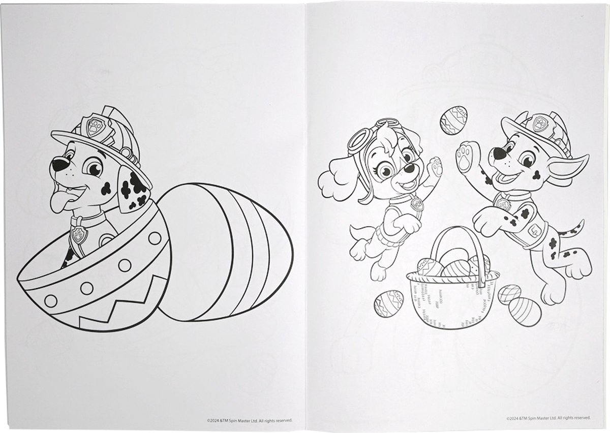 32 PAGINA’S VOL PAASPLEZIER: Maak de vrolijke avonturen van Chase, Marshall en Skye compleet met jouw kleuren.