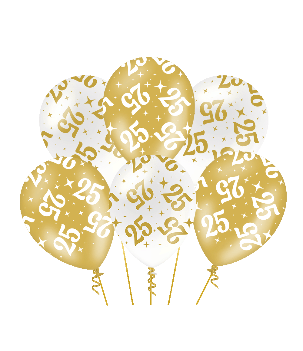 De Fancy Party balloons van Paper Dreams zijn een stijlvolle toevoeging voor elk feestassortiment. Deze goud/witte ballonnen met opdruk zijn gemaakt van hoogwaardig latex en door de luxe uitstraling echte blikvangers. Elke verpakking bevat 6 ballonnen (30 cm) en ze zijn te bestellen per 6 stuks. Combineer deze bestseller met de bijpassende vlaggenlijnen uit de Fancy Party collectie en creëer een complete feestpresentatie!