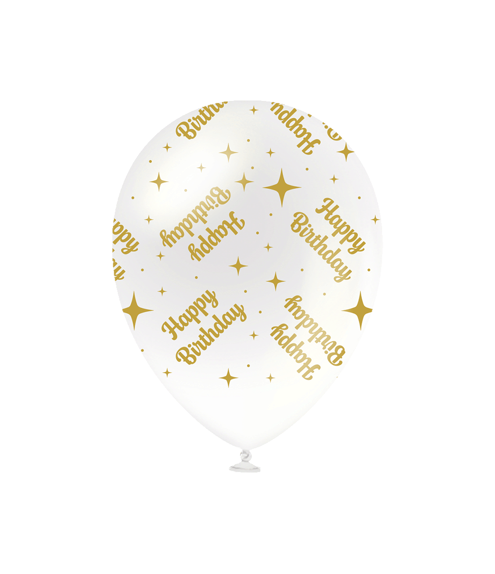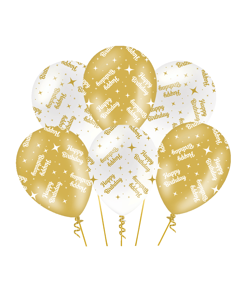 Ballonnen Goud/Wit 15 – Happy Birthday
