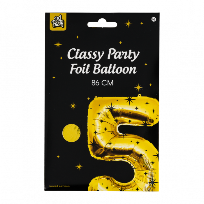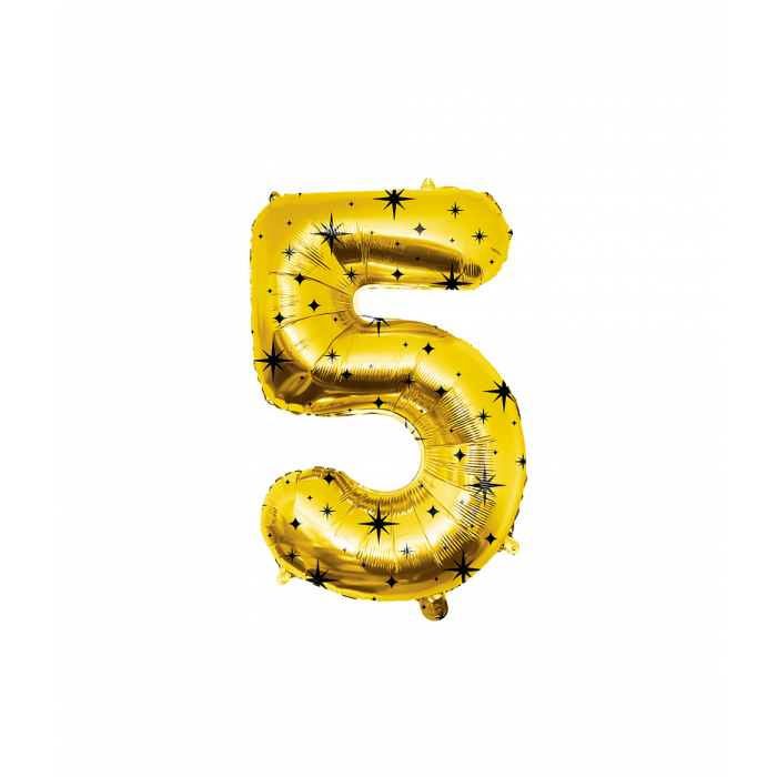Folie OpblaasCijfer “5” goud met sterren 86cm.