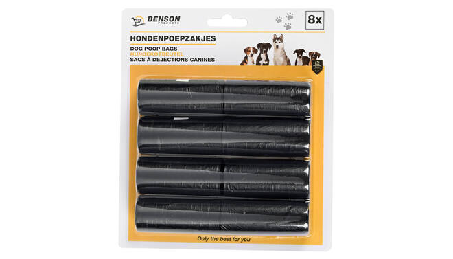 Hondenpoepzakjes 8rollen van 15zakjes op kaart