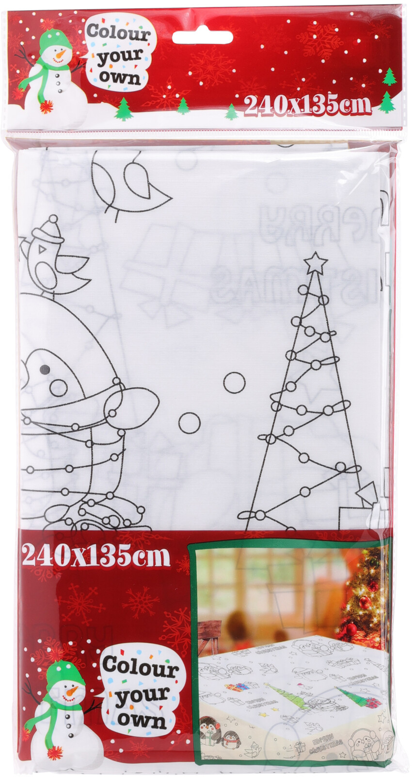 Kleur je eigen Tafelkleed Kerst 240x135cm.