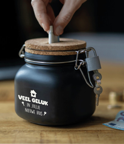 De luxe spaarpotten van Paper Dreams zijn perfecte cadeaus voor bijvoorbeeld Vaderdag, Moederdag of bijvoorbeeld een verjaardag. Deze luxe spaarpot – Nieuwe huis is gemaakt van glas, is zwart van kleur en is te bestellen per drie. Naast deze spaarpot zijn er nog 23 andere teksten te verkrijgen. Informeer ook eens naar het fraaie display, zodat je ze op opvallende wijze kunt presenteren in jouw winkel.