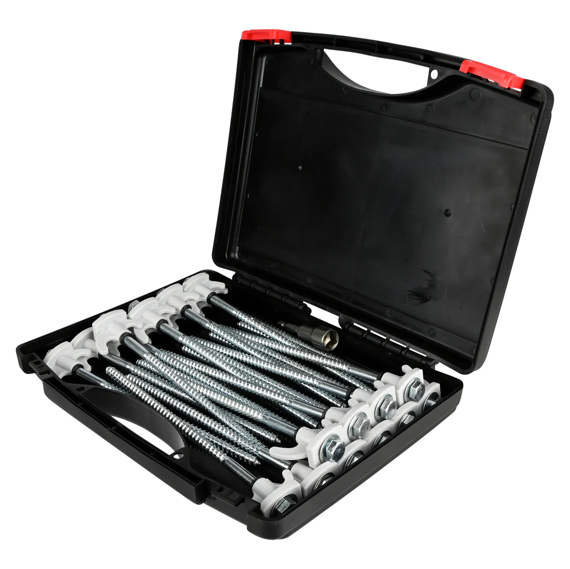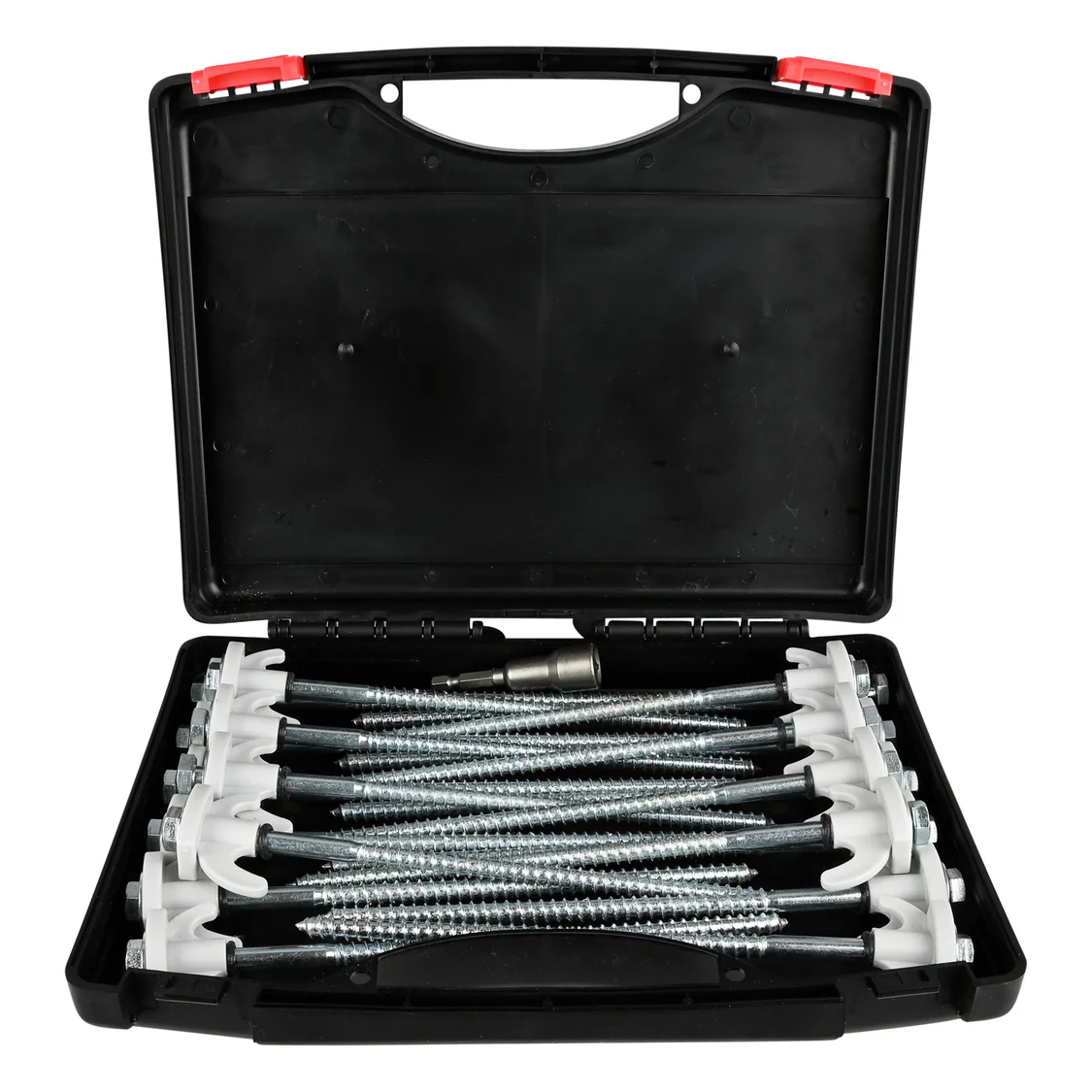 Handige set met 20 schroefharingen en een adapter.