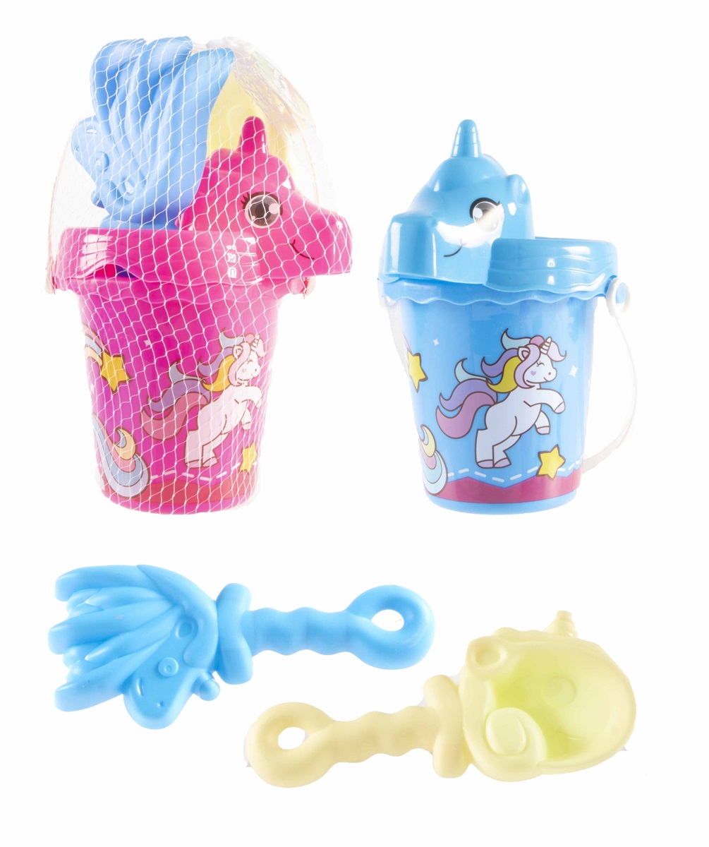 Strandemmerset Eenhoorn 4delig 21cm. 2ass. kleur