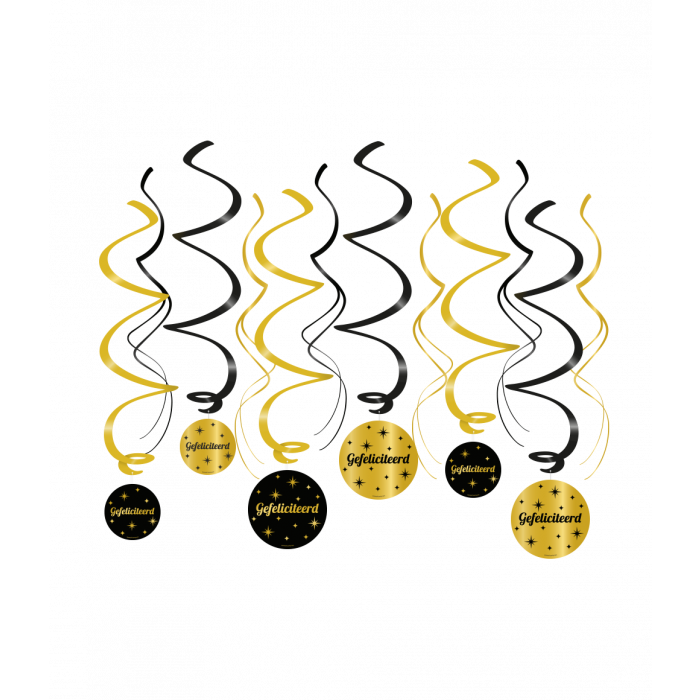 Classy Party Swirl Decorations (12stuks) 70cm. Goud/Zwart 15 – Happy Birthday