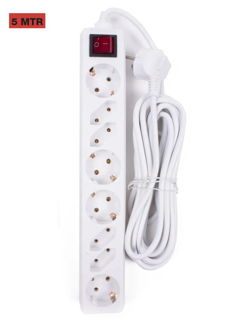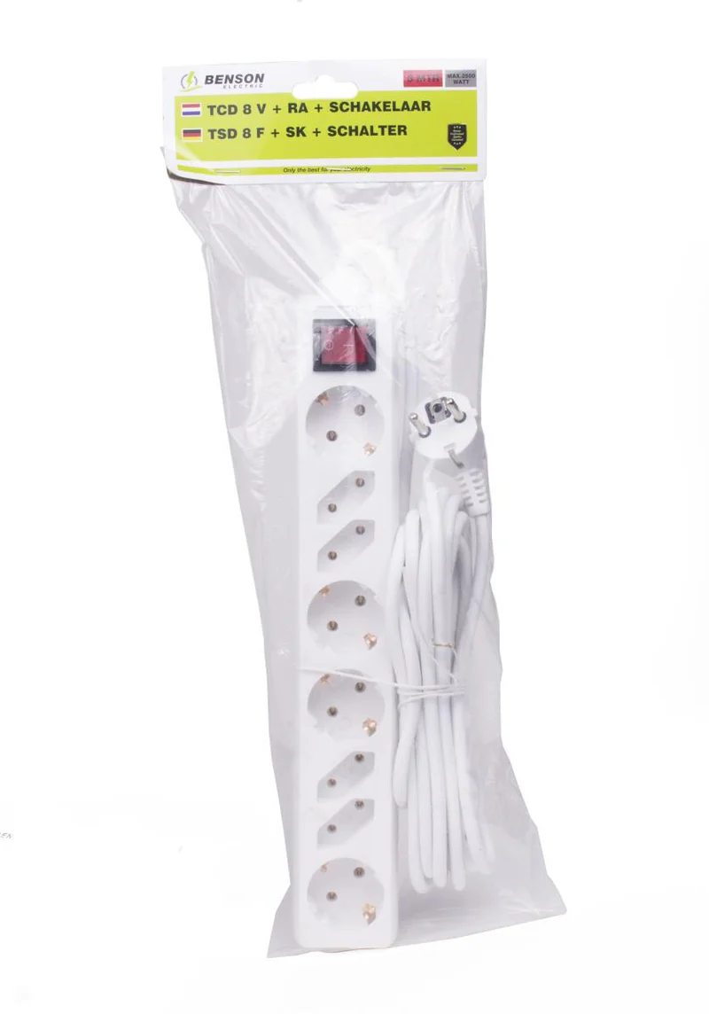 Tafelkontaktdoos 8voudig RA 5mtr + schakelaar. Wit