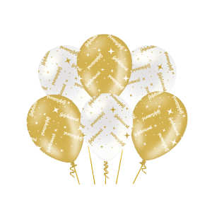 Ballonnen Goud/Wit 20 – Gefeliciteerd