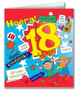 Feestelijke Wenskaart 18 – 18 jaar Cartoon