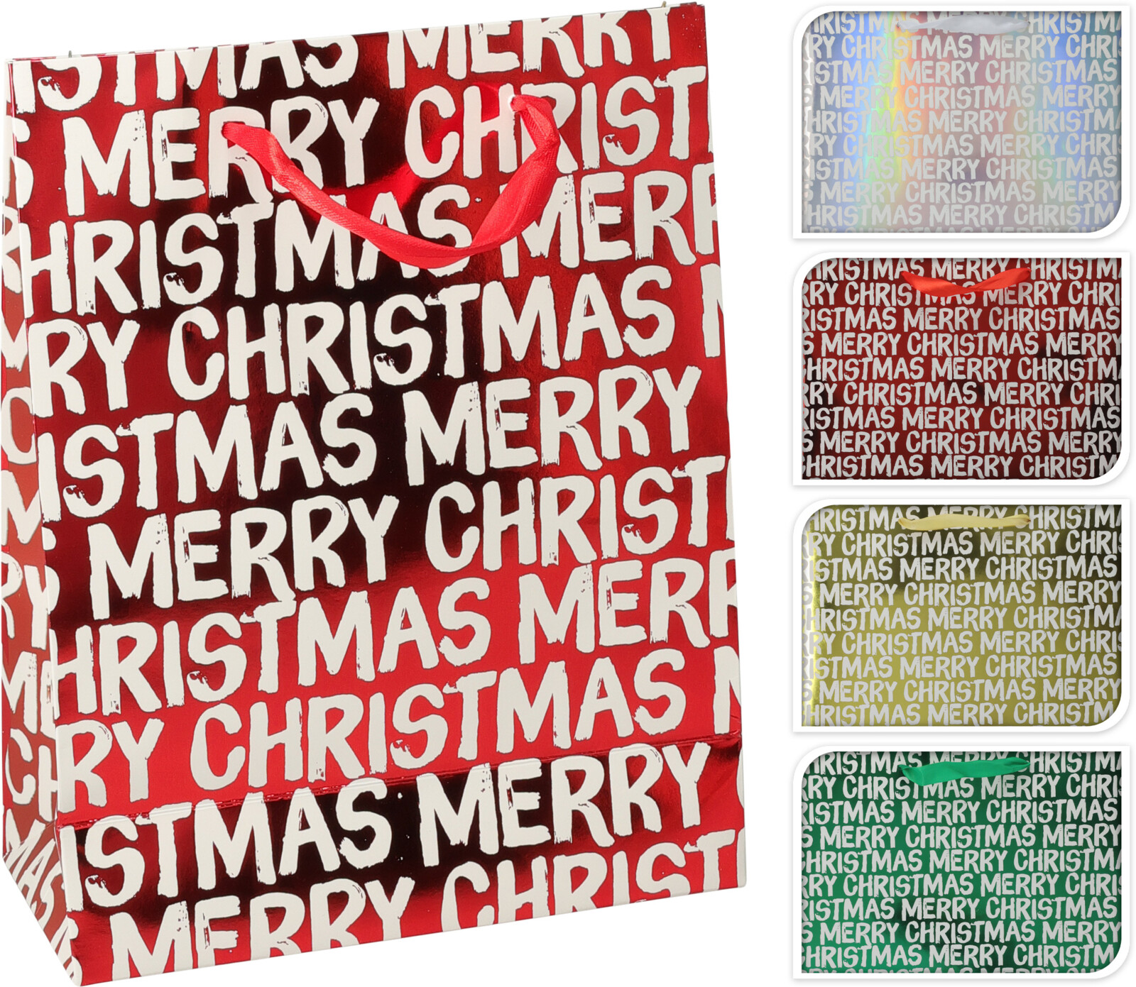 Geschenktas Kerst 4ass. 24x18cm. Metallic