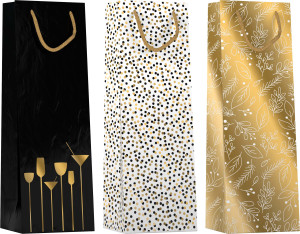 07671. Geschenktas (wijn) fles. 3ass. Metallic