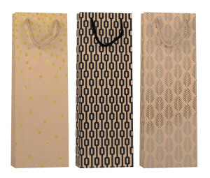 Geschenktas (wijn) fles. Kraft met goudopdruk