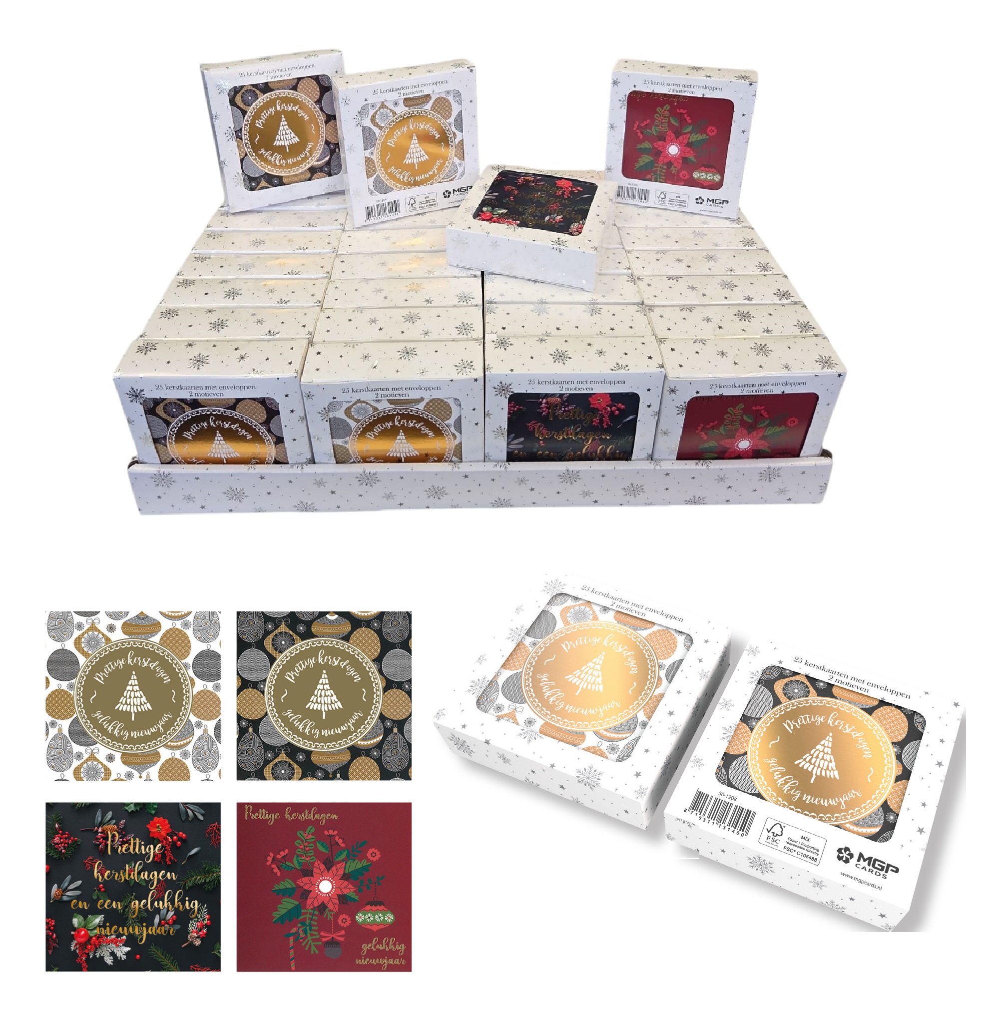 50-1208. Kerstkaarten/envelop doos á 25st. 4ass.